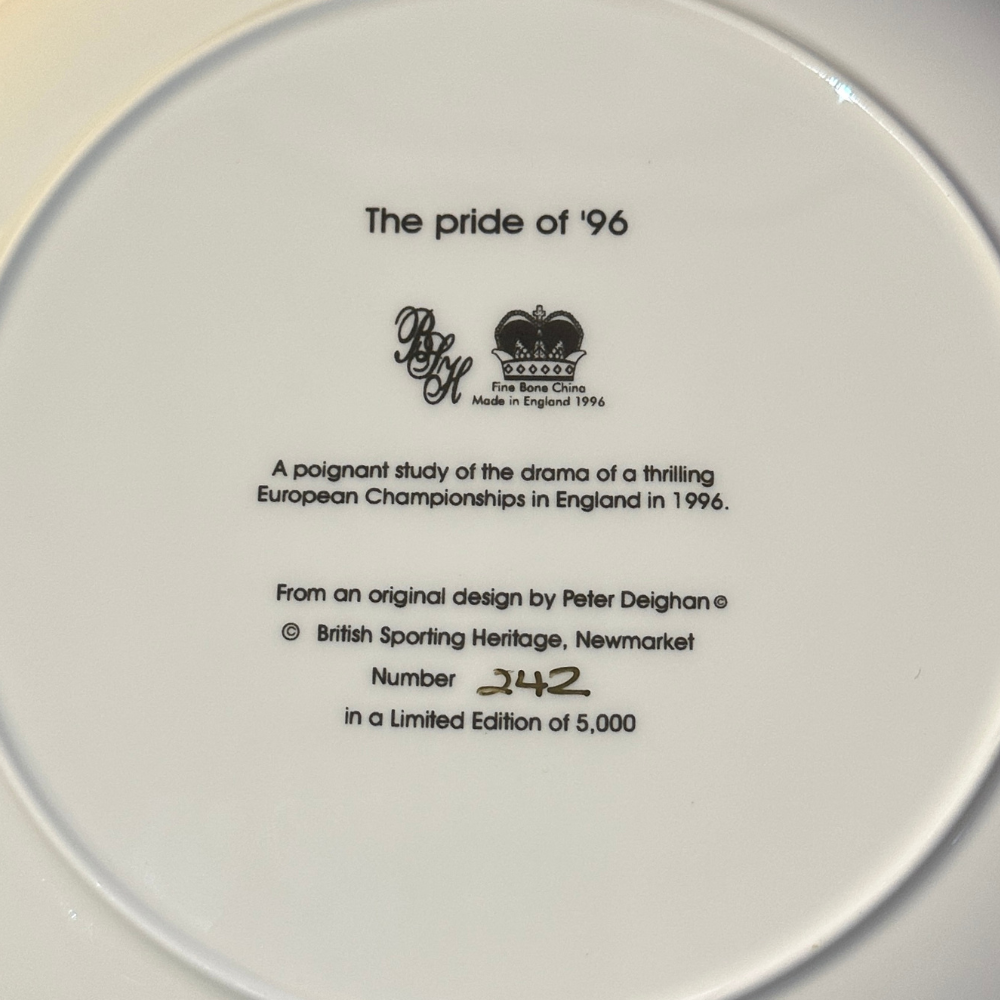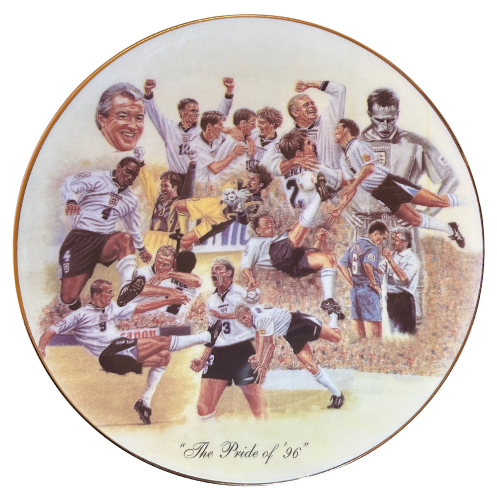 A poignant study of the drama of a thrilling European Championships in England in 1996. A wonderful Limited Edition Collector’s plate in fine bone china, measures 9″ in diameter and is hand numbered and edged in 22 carat gold.